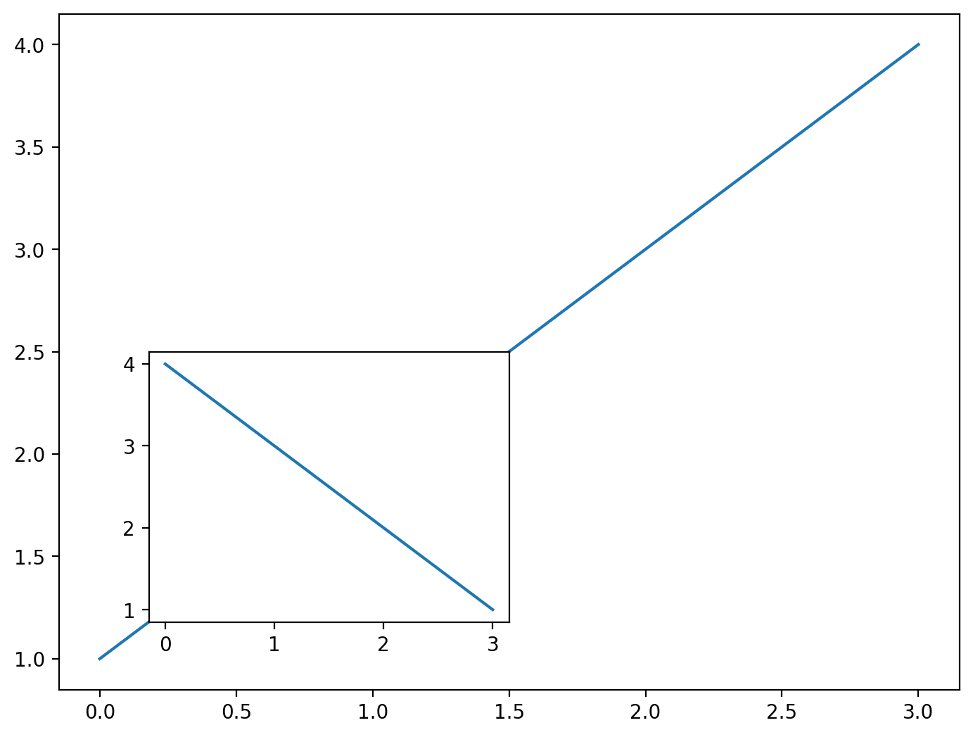 The command ax = fig.add_axes([0,0,1,1]) adds an Axes object to the figure with the extent of the Axes defined by [left, bottom, width, height] where the figure extent is normalized to go from (0,0) (bottom left) to (1,1) (top right). We can add multiple axes to our figure in this way and plot on them as we’ve been doing: