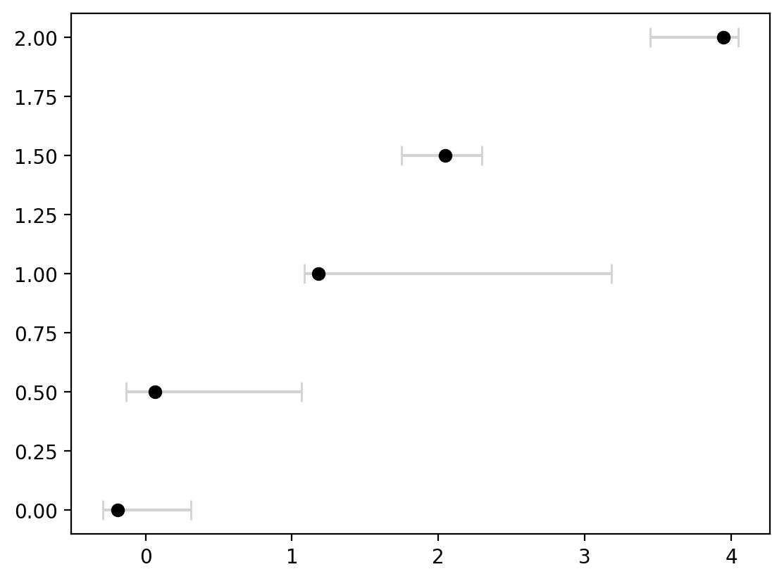 Let’s adjust these parameters a bit to make it clearer that the central point is the estimate and the error bars are indicating the uncertaintly:
