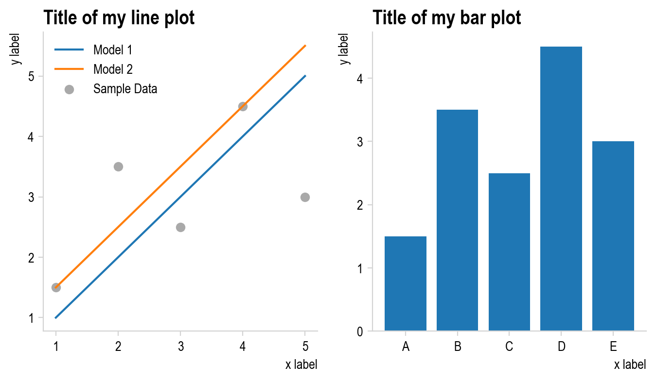 We made many changes above and while you can certainly include all the plt.rcParams[param_to_change] = param_value statements into a header of each plot, you can alternatively collect them into a style sheet that you can simply activate with one line in each file of plt.style.use(path_to_style_file). Let’s do this for all the changes above. In this case, our file would be structure as follows, with each parameter being followed by a colon and the parameter value we want to set it to.