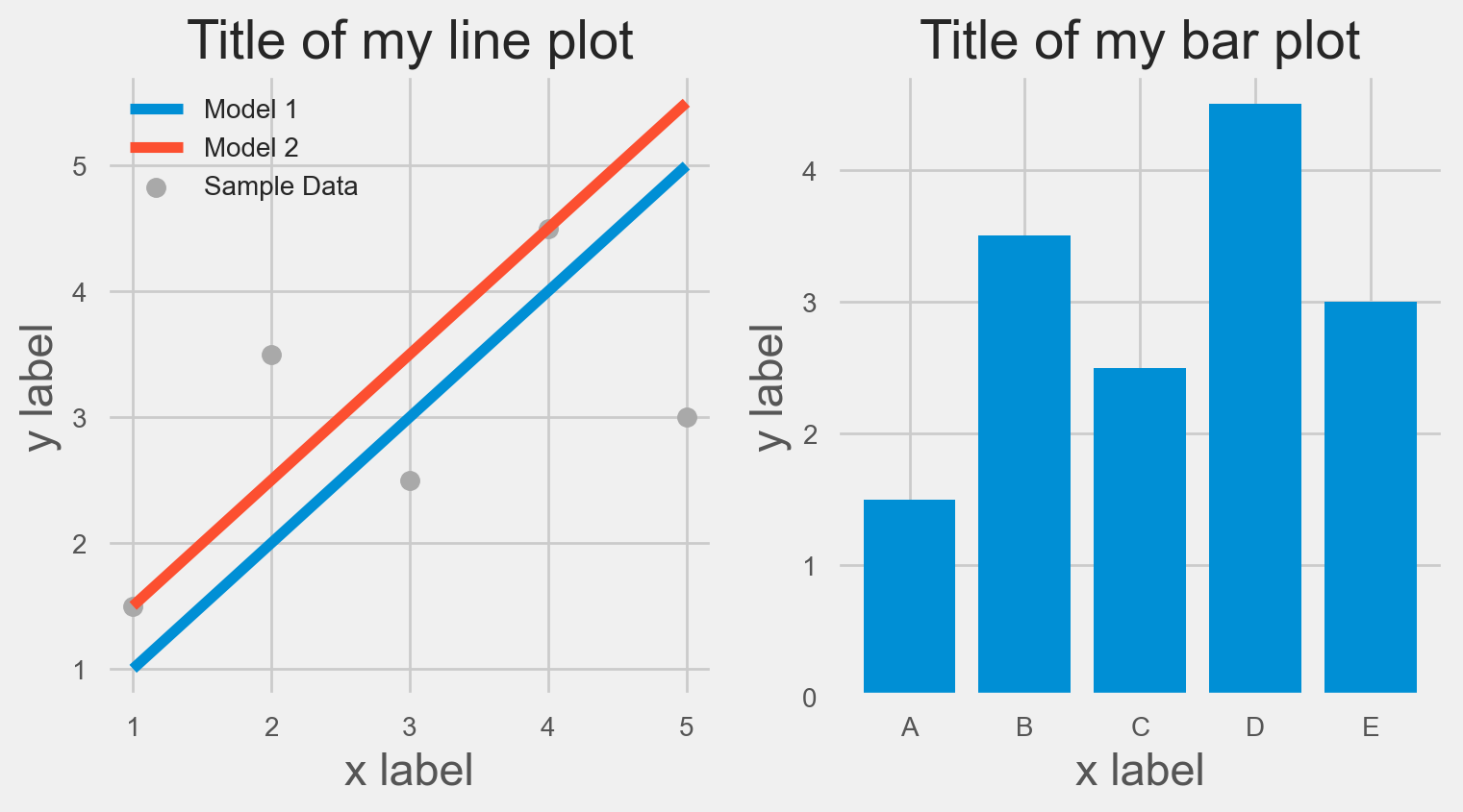 Let’s see what happens when we use each of these and apply them to the plot above. We can do this using the style.use() method of the matplotlib.pyplot module and feeding in a name of a default style that’s been composed into a stylesheet: